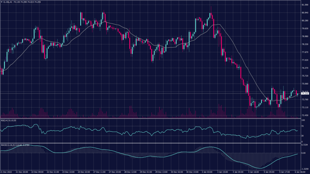 يظهر الرسم البياني الآجل لخام غرب تكساس الوسيط للساعة إمكانية عالية للهبوط نحو 73.00 دولاراً للبرميل. ومع ذلك، لا تزال المؤشرات الفنية على الجانب المحايد.