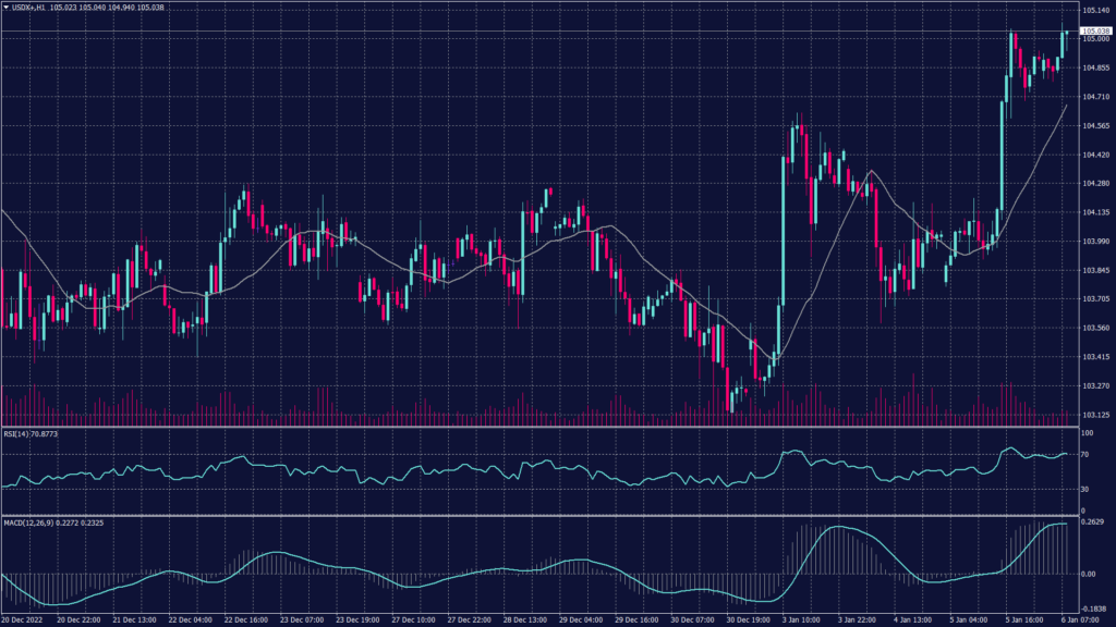 وقفز مؤشر الدولار الأمريكي 0.9 بالمئة إلى أعلى مستوى في شهر تقريبا عند 105.27 بين عشية وضحاها. وكان آخر ارتفاع بنسبة 0.03٪ عند 105.15 وكان في طريقه لتحقيق مكاسب أسبوعية بأكثر من 1.5٪، وهي الأكبر منذ سبتمبر.