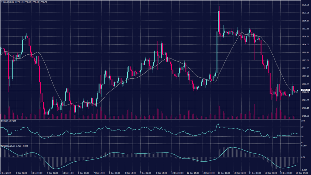 استقر سعر الذهب الفوري عند حوالي 1,776.15 دولاراً للأونصة، بينما استقرت العقود الآجلة للذهب بالقرب من 1,787.05 دولاراً للأونصة. وتراجع كلا الأداتين بنسبة 2٪ يوم الخميس. ارتفعت أسعار السبائك بشكل حاد يوم الثلاثاء بعد أن أظهرت البيانات أن مؤشر أسعار المستهلك الأمريكي (CPI) قد تراجع بشكل أكبر في نوفمبر، مما يشير أيضاً إلى أن ضغوط الأسعار في البلاد قد بلغت ذروتها ومن المرجح أن تتراجع.