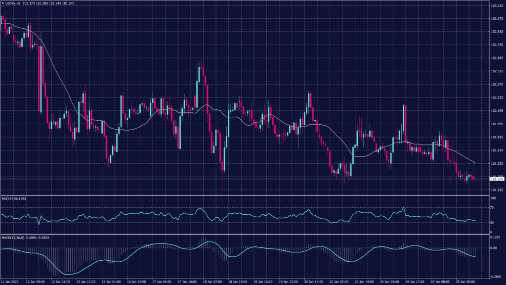 ارتفع مؤشر الدولار الأمريكي بنسبة 0.1٪ إلى 101.65، بعد انخفاضه إلى 101.52 في وقت سابق من الجلسة، ليختبر أدنى مستوى في ثمانية أشهر الأسبوع الماضي عند 101.51. يتم تداول مؤشر الدولار تحت ضغوط بيع شديدة ولا يزال ملتزماً بالاتجاه الهبوطي الذي بدأ في أوائل نوفمبر. في غضون ذلك، تظهر المؤشرات الفنية احتمالية المزيد من الانخفاض إلى ما دون 101.40.