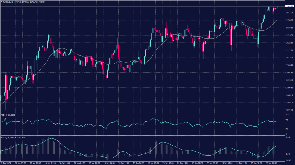 لامست أسعار الذهب أعلى مستوى لها في تسعة أشهر، حيث وصل سعر الذهب الفوري إلى 1,945.55 دولاراً للأوقية ، بعد أن وصل إلى 1,949.09 دولاراً في وقت سابق من اليوم. ازداد شراء المعادن النفيسة حيث يسعى المستثمرون إلى الأمان من الركود المتوقع.