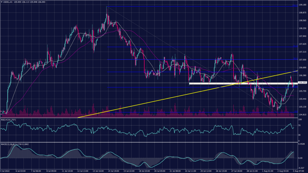 تم تداول مؤشر الدولار الأمريكي على انخفاض بنحو 0.3 ٪ بعد ظهر اليوم الآسيوي إلى 106.120، وسط تلميح من الارتياح أن زيارة رئيسة مجلس النواب نانسي بيلوسي إلى تايوان جلبت القليل من المفاجآت.