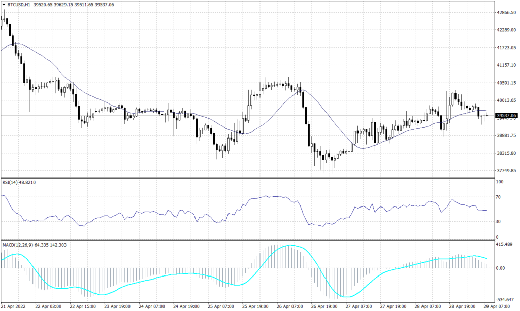 يُظهر الرسم البياني لكل ساعة ارتدادا للسعر لخط الاتجاه، مما قد يؤدي إلى ارتداد عن خط الاتجاه قبل أن يستمر السعر في الانخفاض. علاوة على ذلك، يشير كلا من مؤشر القوة النسبية RSI وMACD إلى أن الاتجاه الهبوطي سيستمر.