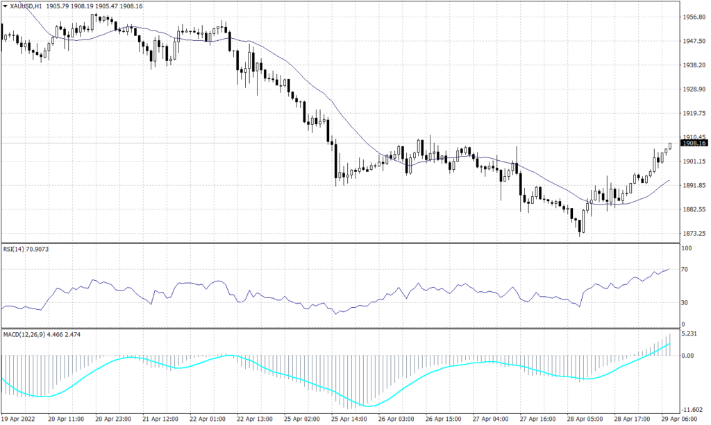 ارتفع خام غرب تكساس الوسيط 2 دولار يوم أمس وسط تحسن التوقعات تجاه تأثير الإغلاق الصيني على الطلب على النفط الخام. يتم تداول النفط الخام الأمريكي حاليا عند 105.50 دولارا للبرميل، مما أدى إلى ظهور إشارة الاتجاه الهبوطي الموضحة على مؤشر MACD.