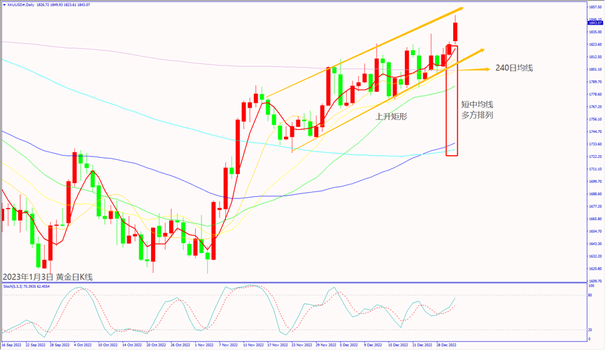 日级别线图,上升矩形多方走势,守住240日均线,有望持续上涨。