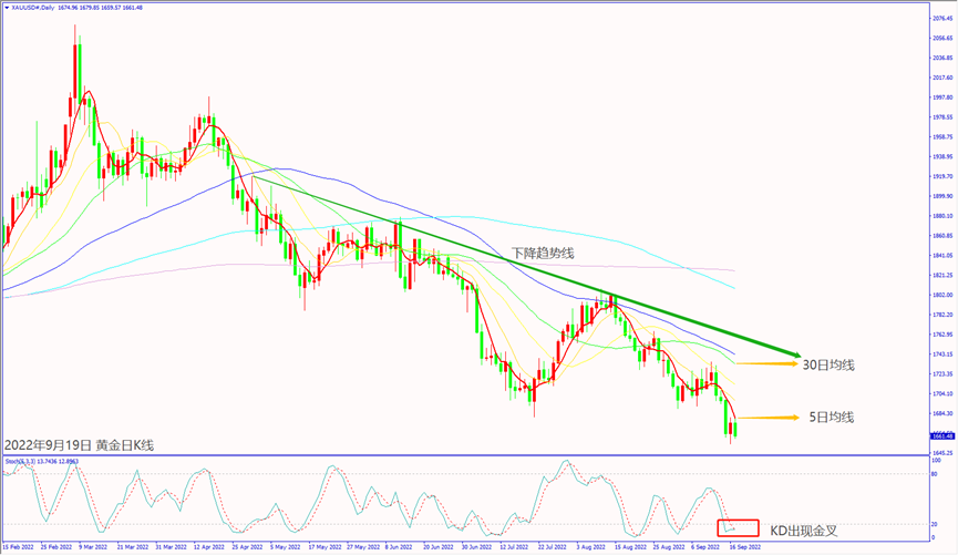 预期本周一(19日)欧洲央行官员和本周三(21日)清晨欧洲央行行长拉加德对10月重申加息,利好欧元和利淡美元,有望带动黄金价格上看1700关口。预期本周四(22日)清晨美联储利率决议前,市场乐观美联储加息利好美元止跌上涨,可能造成黄金价格回调。同日若美联储加息在75个基点以内恐利淡美元,以及英国央行宣布加息利好英镑和欧元,黄金价格一旦突破1700美元,有望出现大反弹涨势。预期本周五(23日)美国公布制造业和服务业数据利好,以及本周六(24日)美联储主席鲍威尔对经济转型表示乐观,一旦美元指数止跌反弹,可能造成黄金价格回调整理。