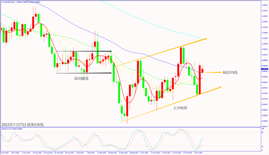 预期本周一(7日)欧洲央行行长拉加德重申加息抑制通胀利好欧元,以及美联储官员可能重申加息趋缓恐利淡美元指数。预期本周二(8日)日本央行公布货币政策会议表示维持宽松货币,有望利好美日上涨。同日欧元区公布零售销售数据若不佳,可能造成欧美和镑美下跌。关注本周三(9日)清晨美国参众议院选举,如果执政党在参众议院变为少数人,可能利淡美元下跌。预期本周四(10日)美国公布CPI数据下降,可能造成美元指数扩大下跌。预期本周五(11日)德国公布CPI数据攀升,可能带动欧美上涨。同日英国公布经济数据若大都不佳,可能造成镑美下跌。