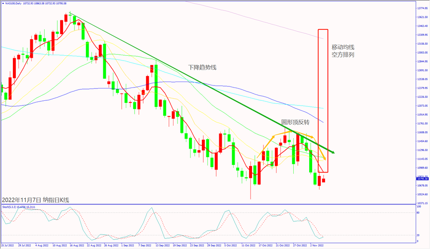 日级别线图,圆形顶反转,移动均线空方排列,可能下探波段新低。