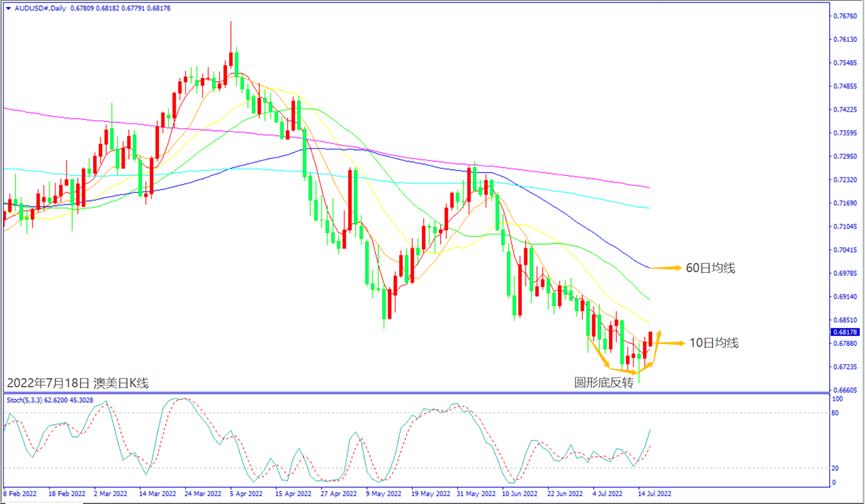 日级别线图,出现圆形底反转,守住10日均线,可能挑战60日均线。