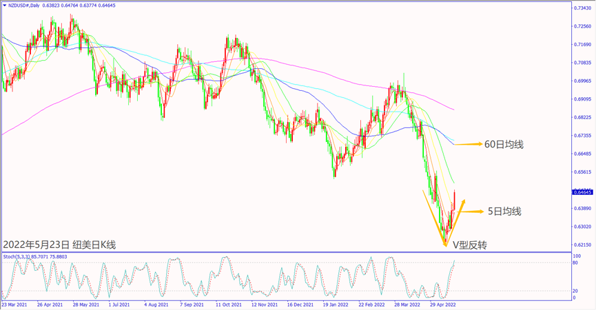 日级别线图,连续上涨出现V型反转,守住5日均线,可能挑战60日均线。