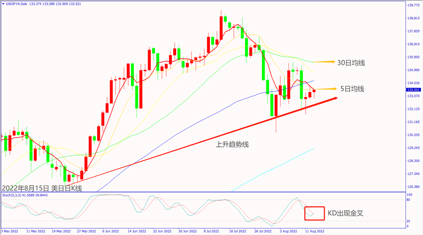 日级别线图,连续上涨KD出现金叉,一旦突破5日均线,可能挑战30日均线。