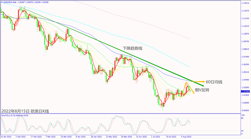 日级别线图,出现倒V反转,60日均线反压,可能回测1.0100关口。