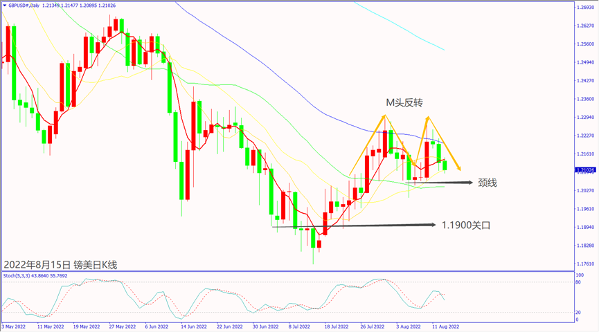 日级别线图,连续下跌形成M头反转,一旦跌破颈线,不排除回测1.1900关口。