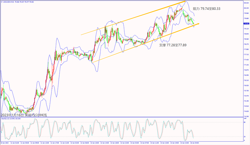上周五(13日)德国统计局预计德国经济可能会在2023年第四季度停滞不前,利淡德指下跌约百点,拖累道琼斯和纳指跌约1%。晚间美国一年期通胀率预期下降利淡加息,带动道琼斯和纳指逆势上涨超1%。俄罗斯新冠变种病毒升温恐冲击石油出口,带动美油价格涨至79.50美元附近整理。晚间美股逆势上涨,以及俄乌冲突仍剧烈交火,推升美油价格扩大上涨近3%,尾盘守在80.00关口上方整理。