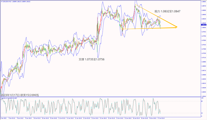 今天(17日)清晨欧洲央行管委埃尔南德斯德科斯表示将继续大幅加息,欧美震荡后一度急涨约20个点。预期今天德国公布CPI数据下滑,可能造成欧美和镑美下跌。预期美国公布制造业数据不佳,可能利淡美元指数走跌。