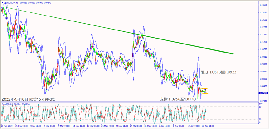 上周五(15日)为耶稣受难日假期美元指数没有报价。受到上周四(14日)欧洲央行利率决议对俄乌战争冲击经济提出示警,亚洲市场仍抛售欧元和英镑,造成欧美和镑美出现回调。美联储哈克预计美国经济增速放缓,一度带动欧美和镑美皆涨逾25个点。晚间美国公布经济数据利好,带动美加上涨约25个点,也让欧美和镑美维持在当天高低点间震荡。