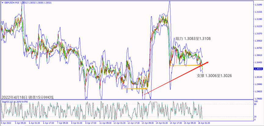 今天(18日)日本央行行长黑田东彦称日元大幅波动可能对日本经济产生负面影响,短线如果日本央行干预造成日元上涨,美日一旦跌破小时布林带下轨线126.30,建议可短空操作。俄乌战争仍维持战火,欧美若跌破小时布林带下轨线1.0788,建议可偏空操作。预期今天美国公布新冠疫情持续攀升恐造成美元指数回调,镑美一旦突破5日均线1.3053,建议可短多操作。