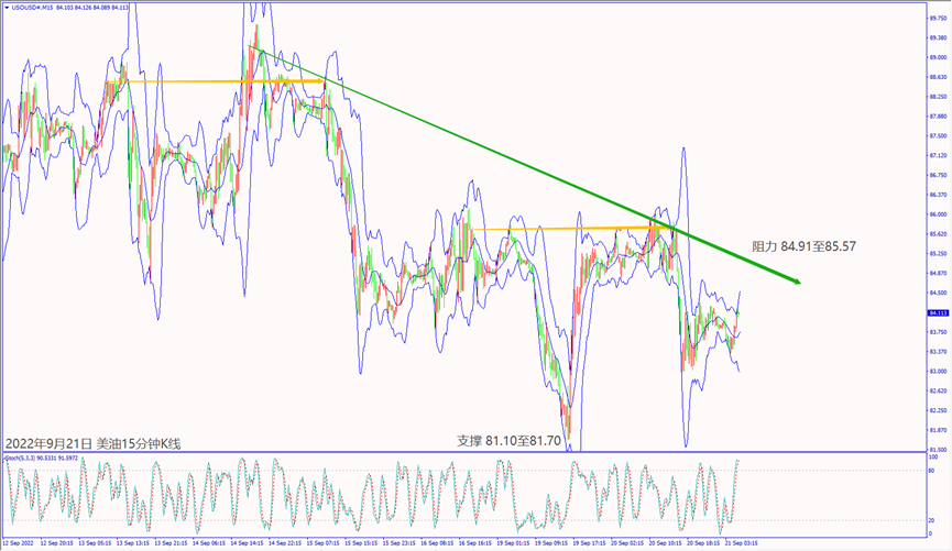 昨天(20日)欧洲央行官员预期维持加息抑制通胀,以及市场预期本周四(22日)美联储利率决议宣布加息75个基点,造成欧美股指皆跌逾2%。美国白宫经济顾问对就业市场表示乐观,道琼斯和纳指尾盘逆势拉升超百点。美国传染病研究所所长福奇表示防疫未达预期标准,并且每天死于新冠人数仍数百人,市场担忧需求下降造成美油价格下跌约3%。美国国家安全顾问表示支持乌克兰对抗俄罗斯,市场避险资金推升美油价格涨至84美元附近整理。
