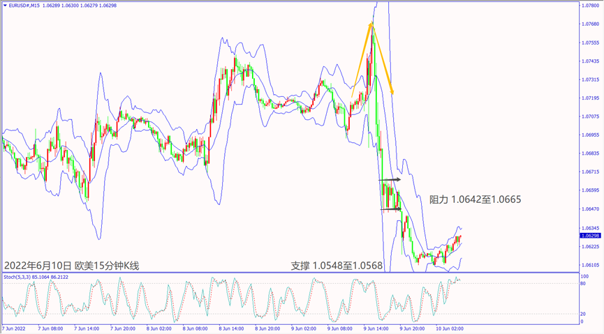 昨天(9日)欧洲央行利率决议声明预测7月加息25个基点,今天(10日)亚洲市场回补欧元带动欧美上涨约15个点。今天预期美国公布CPI数据利好,可能带动美元指数持续上涨。预期今天美国公布消费者信心指数不佳,一旦美元指数转跌,有望带动欧美和镑美走扬。