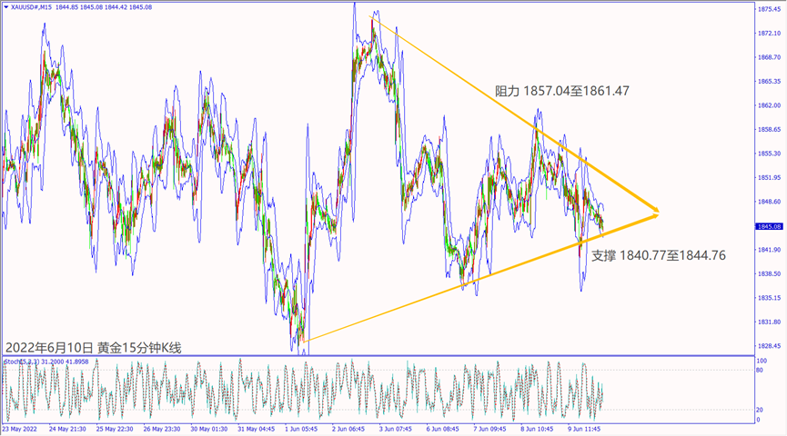 周四(9日)亚洲市场抛售黄金造成价格回落至1850关口下方震荡整理。晚间欧洲央行利率决议乐观7月加息,利好欧元造成美元指数下跌,一度带动黄金价格冲高至1852美元。但是欧洲央行行长拉加德对俄乌冲突影响经济示警,欧元暴跌推升美元上涨,黄金价格一度扩大下跌约15美元,但是在欧美股指大跌超2%下,避险资金拉升黄金价格重回1850关口。