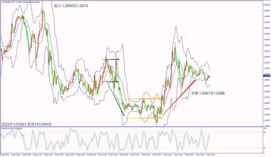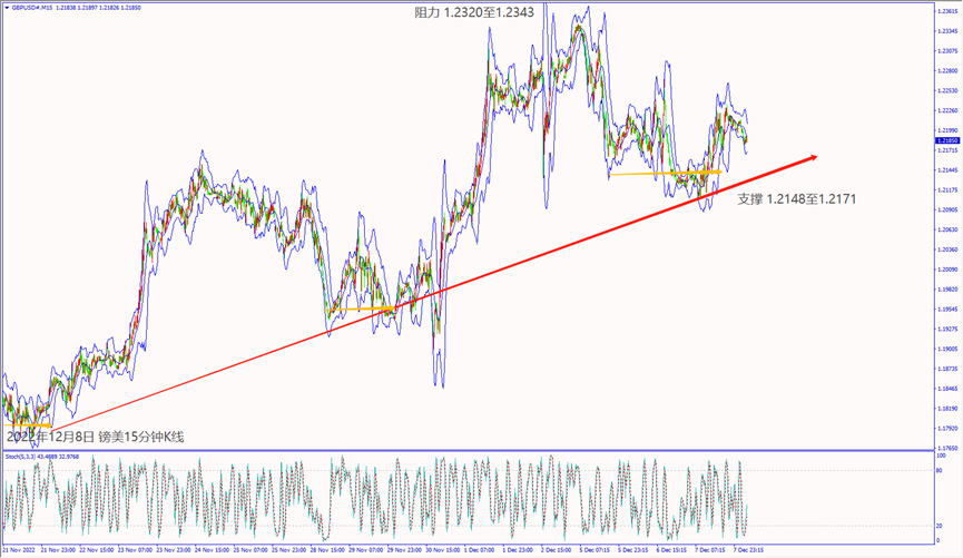 今天(8日)据CME美联储观察表示美联储12月加息50个基点概率为74.7%,亚洲市场回补美元带动指数涨约20个点。日本今天公布第三季度GDP仍处于衰退利淡日元,带动美日逆势上涨约80个点。预期本周五(9日)清晨欧洲央行行长拉加德重申12月加息后仍维持加息,可能带动欧美和镑美上涨。