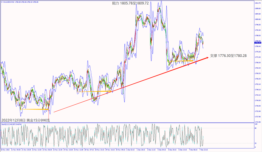昨天(7日)欧洲央行官员对通胀担忧利好加息,以及加拿大利率决议加息2码利淡美元转跌,带动黄金价格扩大上涨约20美元。预期本周五(9日)清晨欧洲央行行长拉加德重申2023年持续加息利好欧元和利淡美元,黄金价格若守住5日均线1781美元,建议可短多操作。