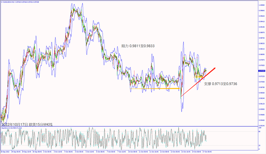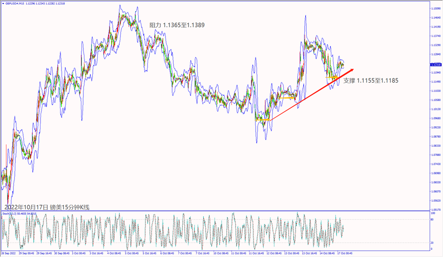 上周五(14日)欧洲副央行行长下调2023年欧元区GDP利淡油价和加元,美加若守住5日均线1.3813,建议可短多操作。前天(15日)欧洲央行管委诺特预期未来几个月进一步加息利好欧元,欧美一旦突破小时布林带上轨线0.9760,建议可短多操作。昨天(16日)英国新任财长大刀阔斧废除前任财长调整的税率有望利好英镑,镑美若突破30日均线1.1254,建议可短多操作。