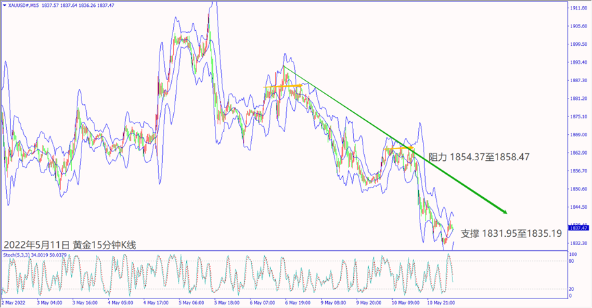 昨天(10日)多位美联储官员预期连续加息利好美元指数上涨,造成黄金再度下跌回测240日均线。预期今天(11日)美国公布CPI利淡美元,黄金守住1830关口,建议可短多操作。