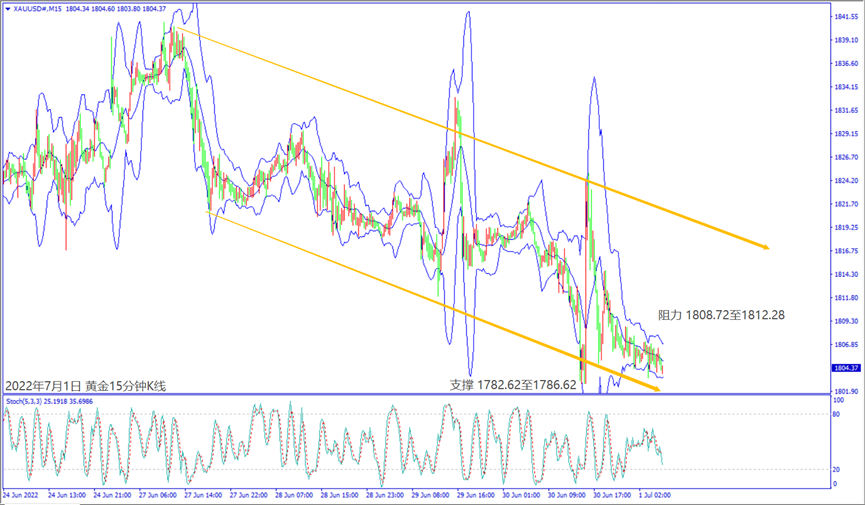 昨天(30日)受到美股止跌反弹,也让黄金价格反转下跌约20美元,尾盘守在1805美元附近整理。预期今天(1日)欧元区公布CPI数据利淡欧元和利好美元上涨,黄金价格一旦掼破1800关口,建议可短空操作。