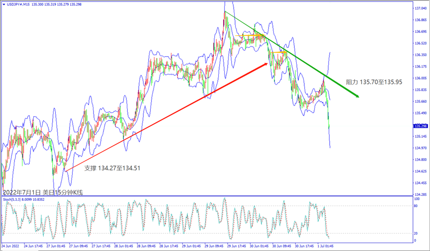 今天(1日)日本央行称大型制造商信心指数连续第二个季度恶化,恐让日本央行关注日元大跌造成伤害,美日若跌破小时布林带下轨线135.43,建议可短空操作。预期今天欧元区公布CPI数据下降,欧美一旦跌破小时布林带下轨线1.0462,建议可短空操作。预期今天美国公布经济利淡美元指数,镑美若突破5日均线1.2177,建议可短多操作。