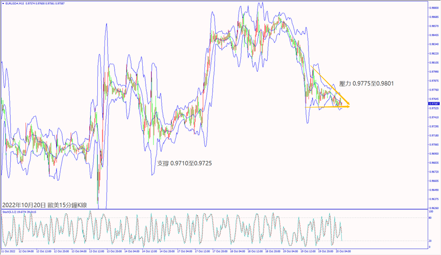 今天(20日)日本財長大臣鈴木俊一表示不能容忍因投機行為導致的過度外匯波動,美日一旦跌破小時布林帶下軌線149.72,建議可短空操作。預期今天歐洲央行公佈季度歐元區經濟預期出現衰退,歐美若摜破10日均線0.9754,建議可短空操作。預期今天美國公佈經濟數據好壞參半恐造成美元指數轉跌,鎊美若守住10日均線1.1180,建議可短多操作。