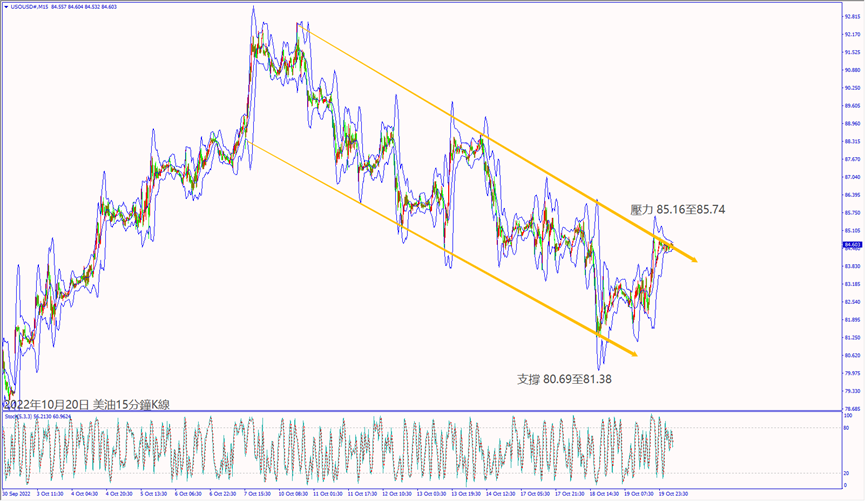 昨天(19日)英國工會宣布英國鐵路系統將於11月初進行3次罷工恐影響經濟,造成德指下跌近2%,拖累美股下跌。晚間美國公佈經濟數據好壞參半,造成道瓊斯和納指出現震盪。美聯儲經濟褐皮書表示需求疲軟的擔憂日益加劇,前景變得更加悲觀,造成道瓊斯和納指擴大下跌近2%。受到歐美股指下跌影響,一度拖累美油價格摜破82.00關口。晚間美國EIA原油庫存低於市場預期,帶動美油價格逆勢上漲逾3%,尾盤守在84.50美元上方整理。