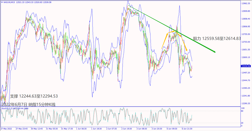 昨天(6日)美英欧对乌克兰讨论停战,带动欧美股指出现大涨,但是美国限电和通胀因素影响,造成道琼斯和纳指跳水下跌吞噬当日涨势。预期今天(7日)欧元区公布经济数据利好,德指反弹冲不过小时布林带中轨14,598,建议可短空操作。预期今天美国公布贸易帐数据不佳,纳指一旦跌破10日均线12,544,建议可偏空操作。