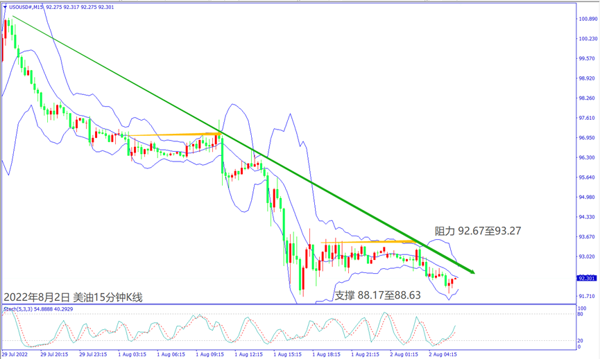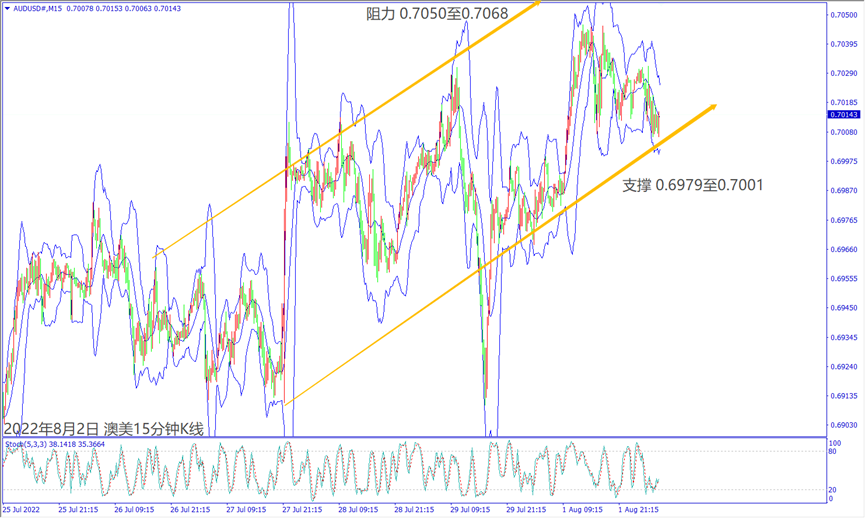 今天(2日)美国伊利诺伊州和加利福尼亚州进入猴痘疫情紧急状态,早上美元指数下跌近40个点。预期澳大利亚宣布加息,利好澳美拉出涨势。预期今天英国和瑞士公布经济数据皆不佳,可能造成欧美和镑美下跌。