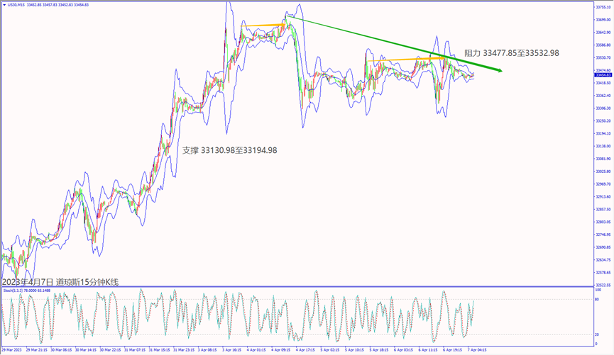 昨天(6日)欧元区公布经济数据利好,以及美联储布拉德乐观今年第一季度GDP增长,利好欧美股指震荡后收涨。预期今天(7日)法国公布贸易帐不佳,德指若掼破小时布林带中轨15,640,建议可短空操作。预期今天美国公布非农和失业率皆不佳,道琼斯冲不过5日均线33,496,建议可短空操作。