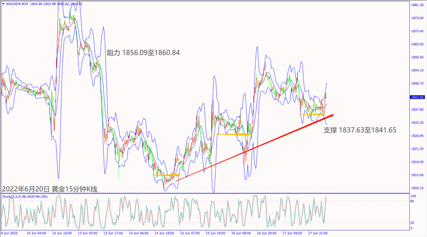 上周五(17日)受到美元指数大涨影响,黄金价格反转下跌约20美元,尾盘守在1840关口上方整理。预期今天(20日)欧洲央行行长拉加德提到加息抑制通胀利好欧元,一旦造成美元出现大跌,黄金价格若突破10日均线1842美元,建议可短多操作。