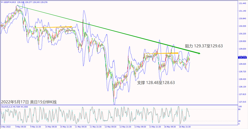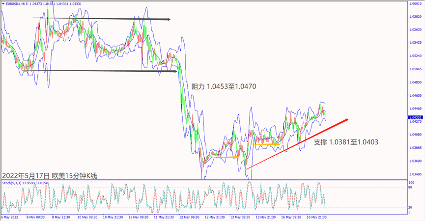 预期今天(17日)英国公布失业数据不佳,镑美一旦跌破小时布林带中轨1.2320,建议可短空操作。预期今天欧元公布第一季度GDP数据不佳,欧美冲不过5日均线1.0435,建议可短空操作。预期今天美国公布零售销售数据不佳恐利淡美元,美日一旦跌破5日均线129.16,建议可偏空操作。