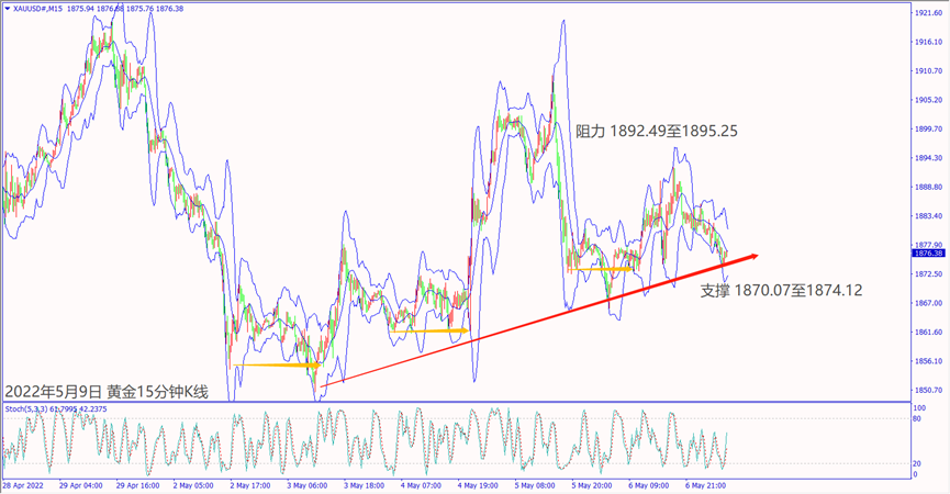上周五(6日)受到美元指数一度大跌影响,带动黄金价格冲高至1890关口。预期今天(9日)欧美公布经济数据大都不佳可能造成股指持续下跌,黄金价格守住5日均线1876美元,建议可偏多操作。