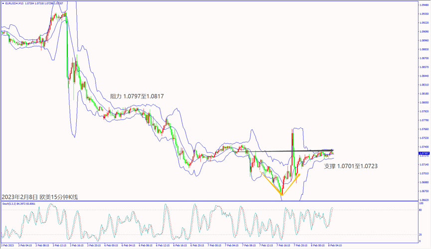 今天(8日)加拿大央行行长表示需要暂停加息利淡加元,美加若守住5日均线1.3390,建议可短多操作。预期今天欧洲央行官员重申3月加息2码,欧美若守住小时布林带中轨1.0722,建议可短多操作。预期今天美国公布经济不佳利淡美元,镑美一旦突破5日均线1.2076,建议可短多操作。