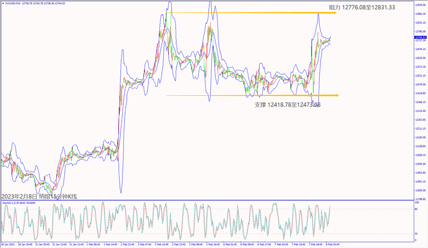 今天(8日)清晨美联储主席鲍威尔暗指加息趋缓,并最后表示劳动力持续增长利好经济和加息,也让道琼斯和纳指震荡后收涨近2%。预期今天欧洲央行官员重申3月加息2码,德指若跌破5日均线15,417,建议可短多操作。预期今天美国公布经济数据不佳,纳指若掼破小时布林带中轨12,680,建议可短空操作。