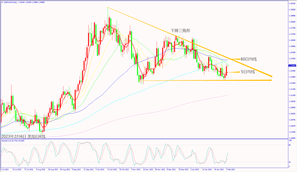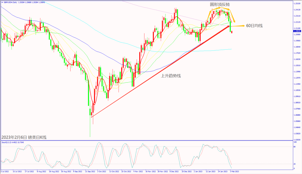 上週一(30日)牛津經濟研究院預測歐元區經濟增長趨緩利淡歐元,一度帶動美元指數沖高。上週二(31日)歐元區公佈去年第四季度GDP利好,以及上週三(1日)美國公佈小非農資料不佳造成美元指數轉跌,利好歐美上漲。上週四(2日)清晨美聯儲利率決議宣佈加息25個點如市場預期,加上主席鮑威爾對經濟偏向悲觀,造成美元指數擴大下跌約180個點,也讓歐美大漲約230個點再創10個月新高。同日晚間英國和歐洲央行皆宣佈加息50個點,並且歐洲央行行長拉加德對未來經濟增長示警利淡歐元,推升美元逆勢上漲。上週五(3日)美國公佈非農資料利好美元指數擴大上漲約215個點,帶動美日和美加皆漲超160個點,也讓歐美和鎊美反轉跌逾240個點。