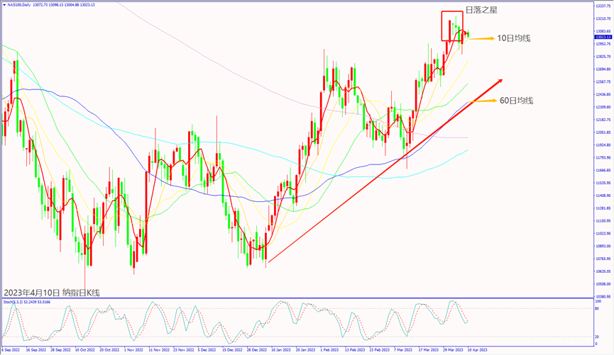 日級別線圖,日落之星反轉信號,一旦跌破10日均線,可能下探60日均線。