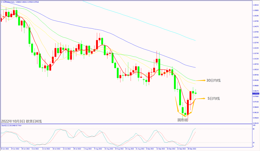 日級別線圖,圓形底反轉,守住5日均線,可能挑戰30日均線。
