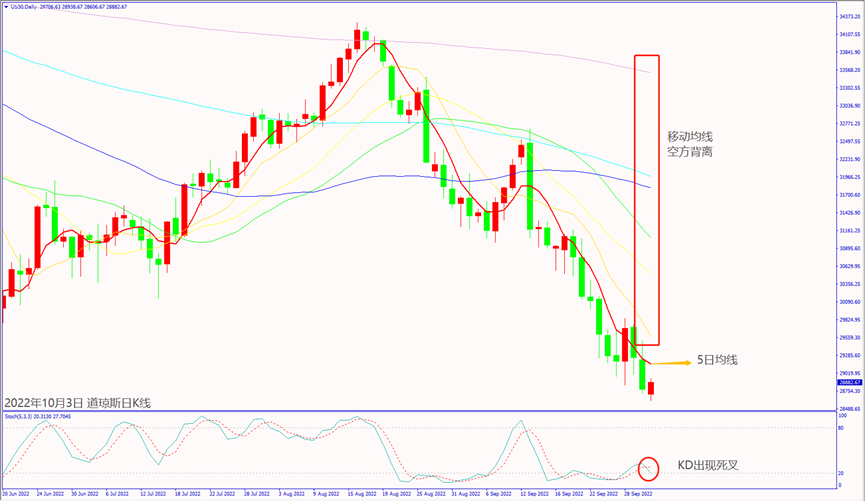 日級別線圖,KD出現死叉,5日均線沖不過,不排除下探波段新低。