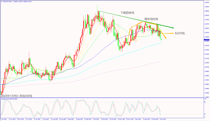 日級別線圖,圓形頂反轉,5日均線反壓,可能正式轉跌。