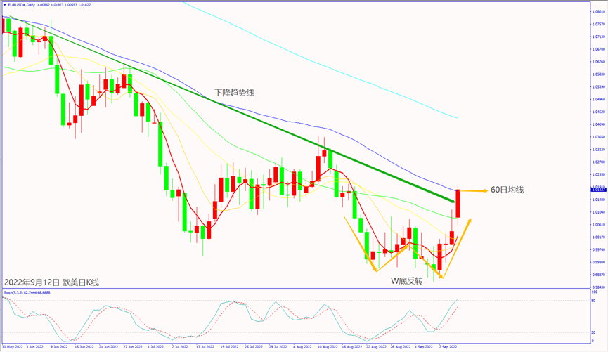日級別線圖,V型反轉,下降趨勢線沖不過,可能回測60日均線。