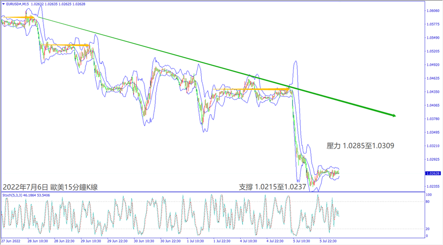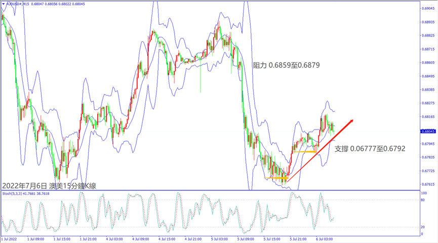昨天(5日)瑞典和芬蘭正式簽署加入北約造成歐元暴跌,部分避險資金轉向日元帶動漲勢,美日若跌破135.00關口,建議可短空操作。預期今天(6日)歐元區零售銷售數據不佳,歐美一旦跌破小時布林帶下軌線1.0251,建議可短空操作。歐美公佈經濟衰退避險資金可能部分流向澳元,預期美國公佈經濟數據利淡美元,澳美若突破小時布林帶上軌線0.6818,建議可短多操作。