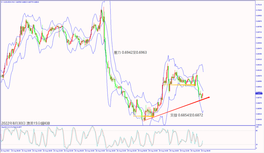 隨著北半球進入秋天,預期歐盟國家將向澳大利亞購買更多天然資源利好澳元,澳美若突破小時布林帶中軌0.6898,建議可短多操作。預期今天(30日)歐元區公佈經濟數據利好,歐美若守住5日均線0.9975,建議可短多操作。預期今天美國公佈經濟數據大都不佳,鎊美若守住小時布林帶下軌線1.1685,建議可短多操作。