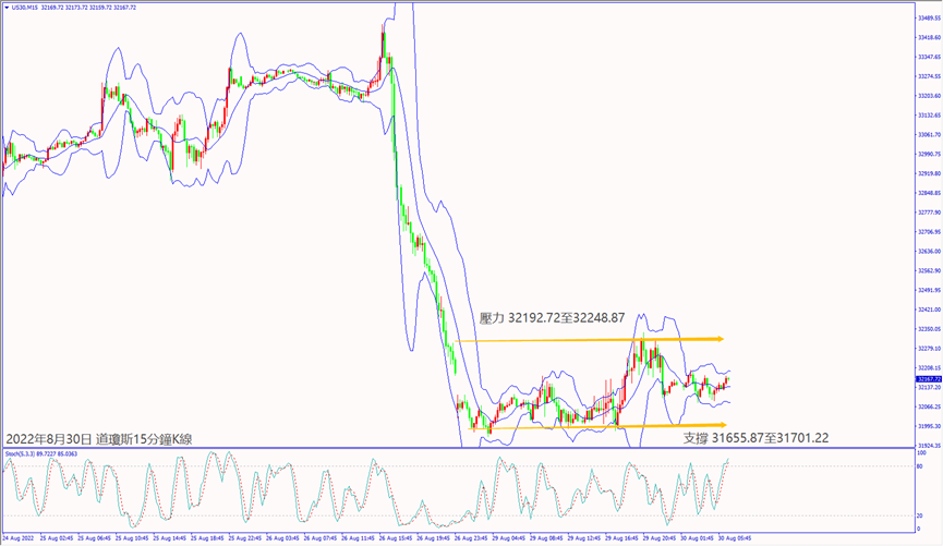 昨天(29日)歐洲央行首席經濟學家表示,小幅度加息不可能對經濟帶來影響,帶動歐美股指從早上低點反轉上漲約1%。預期今天(30日)歐元區公佈經濟數據利好,德指一旦突破小時布林帶上軌線12,948,建議可短多操作。預期今天美國公佈經濟數據大都不佳,道瓊斯若沖不過小時布林帶上軌線32,350,建議可短空操作。