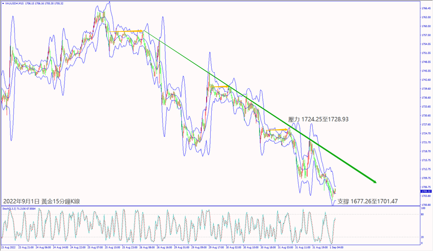 昨天(31日)美聯儲梅斯特暗指9月加息75個基點,今天(1日)亞洲市場回補美元帶動指數上漲約35個點。預期今天歐元區公佈製造業數據大都利好,有望利好歐和鎊美上漲。預期今天美國公佈經濟數據好壞參半,美元指數若守不住5日均線108.75,可能開始轉跌。